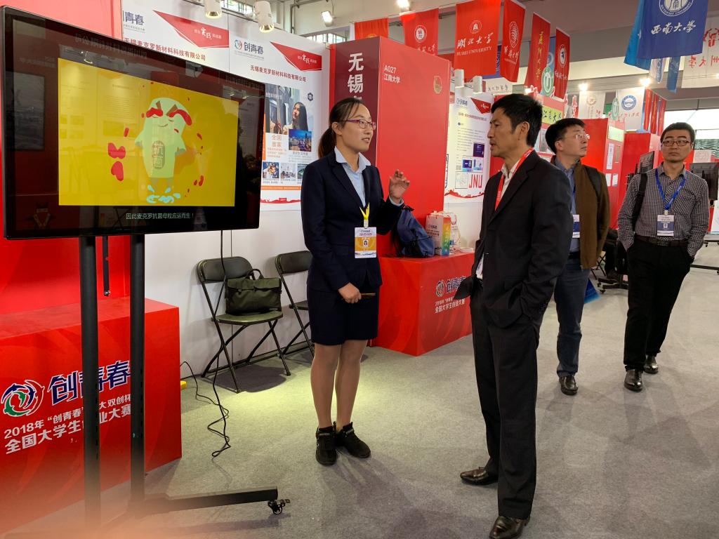 在比赛期间举办的国际大学生创新创业成果展示会中,我校学子用出色的项目、饱满的热情和精彩的讲解向观摩人员展示了项目的创新性与可行性,受到江苏团省委副书记林小异等同志的充分肯定,得到了《中国青年报》记者的采访。