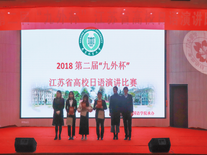 2018年12月16日,由中国日语教学研究会江苏分会、江苏省高校外语教学研究会和九州外国语学院联合主办的江苏省第二届“九外杯”高校日语演讲大赛,在南京林业大学落下帷幕。参赛学子分别来自于南京大学、江南大学、东南大学、南京邮电大学、南京林业大学、安徽大学等32所高校。