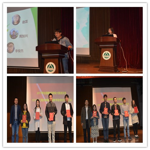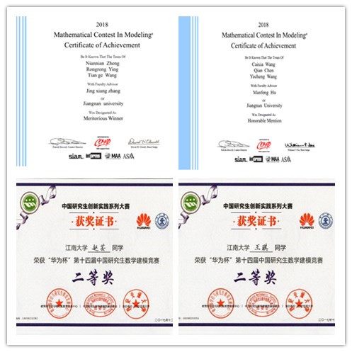 至此,2017年度江南大学数学建模系列赛事圆满结束。我校在“高教社杯”全国大学生数学建模竞赛上获得全国二等奖1项,江苏省一等奖1项,江苏省二、三等奖7奖;在“华为杯”中国研究生数学建模竞赛上获得全国二等奖2项,全国三等奖3项。获奖学生分别来自理学院、物联网工程学院、机械工程学院、环境与土木工程学院、纺织服装学院、商学院等学院,获奖面比以往有所扩大。总体竞赛成绩较过去几年有较大幅度提升。